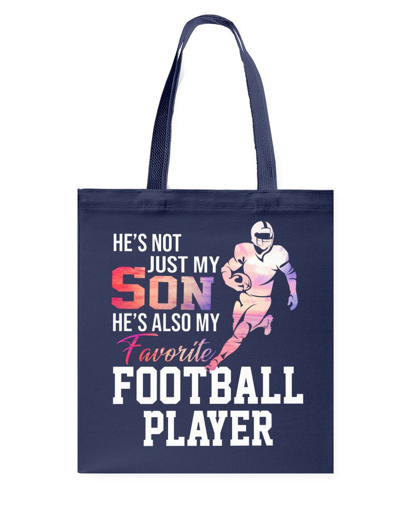 My Son Is Also My Favorite Football Player T-Shirt - Guys V-Neck - Basketweave Tote Bag